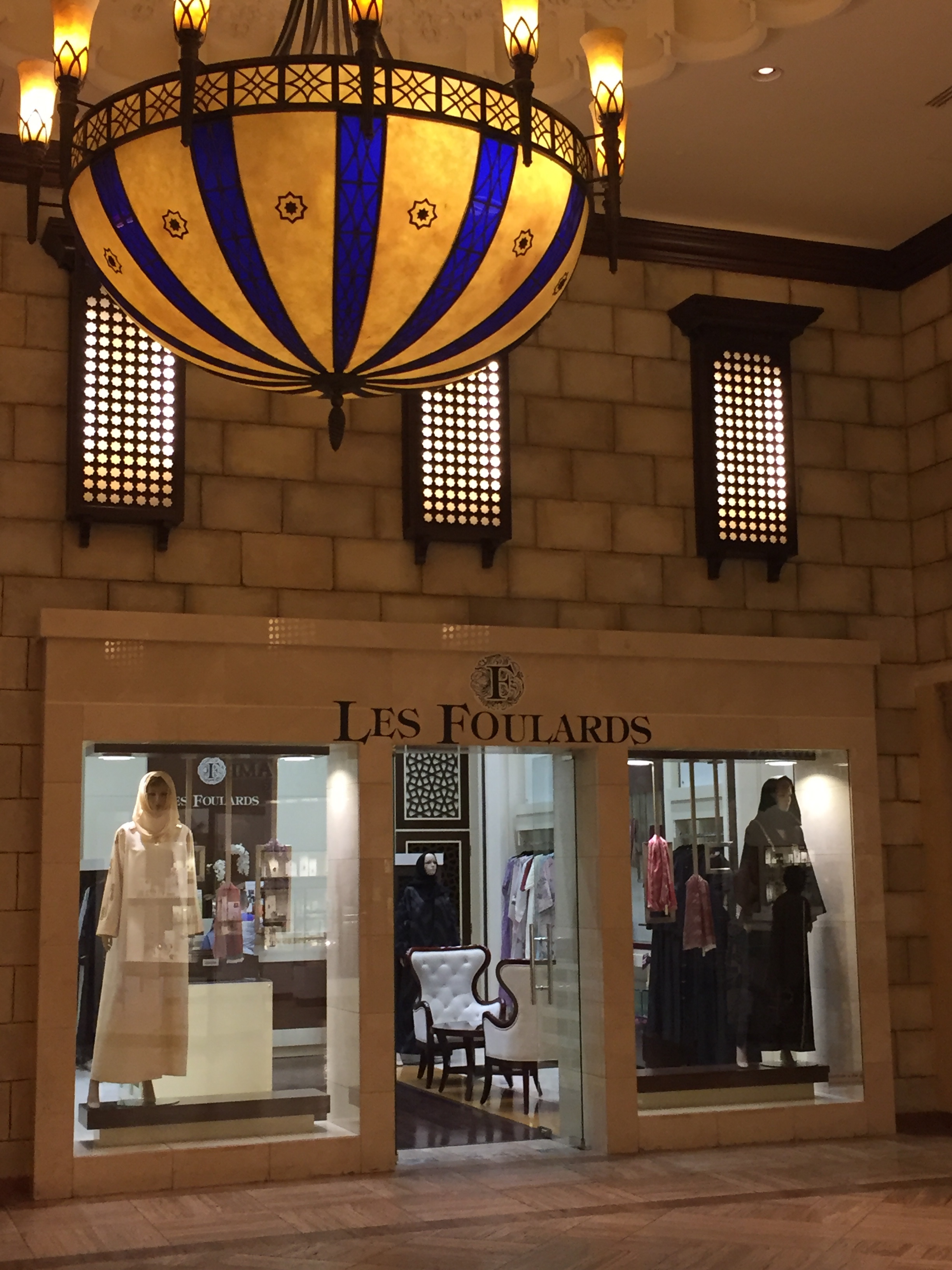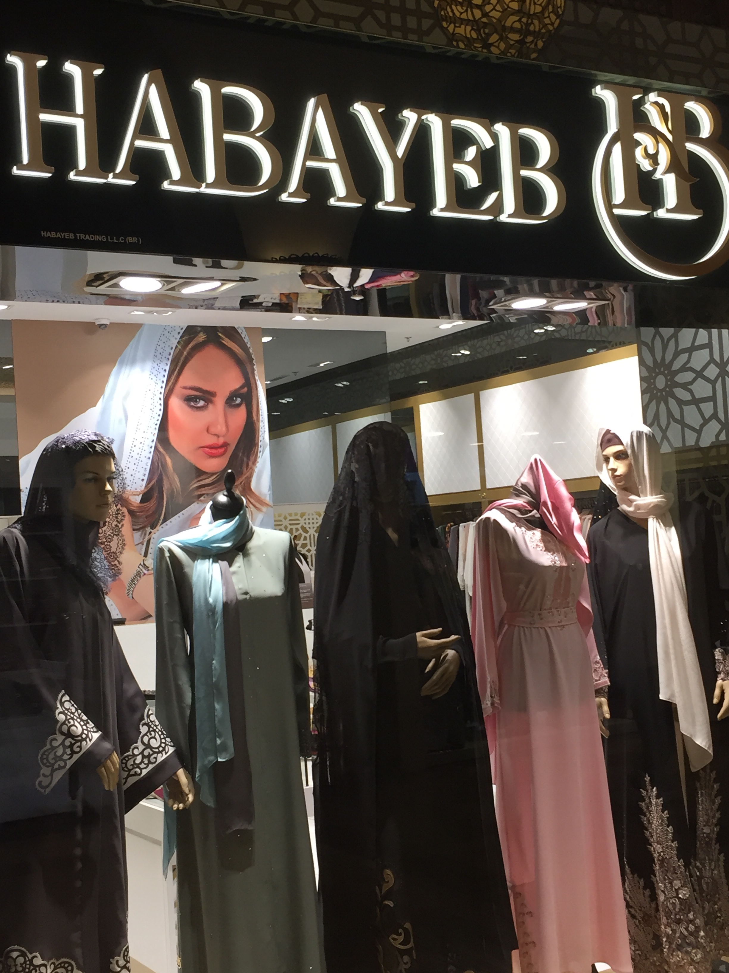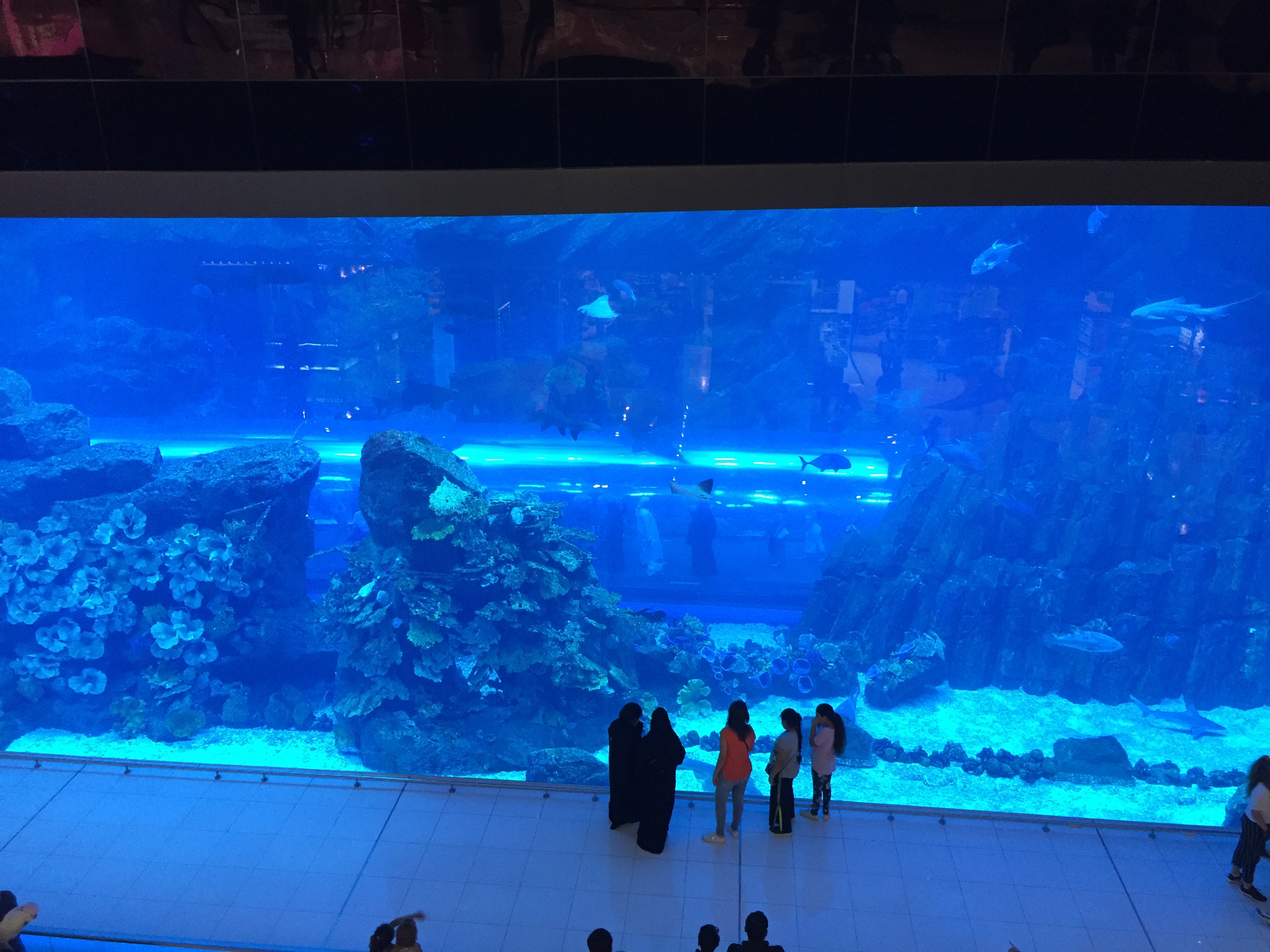 Of course the first thing we have to do is shopping and the Dubai Mall just happens to be across the street. Jewelry stores like I have never seen before. American stores that we are used to seeing all over but carrying completely different looking clothing. We laughed that in H & M we could have bought outfits that we could have worn as Halloween costumes and burkas. Entire stores were you can buy burkas and turbans, an ice skating rink and an aquarium