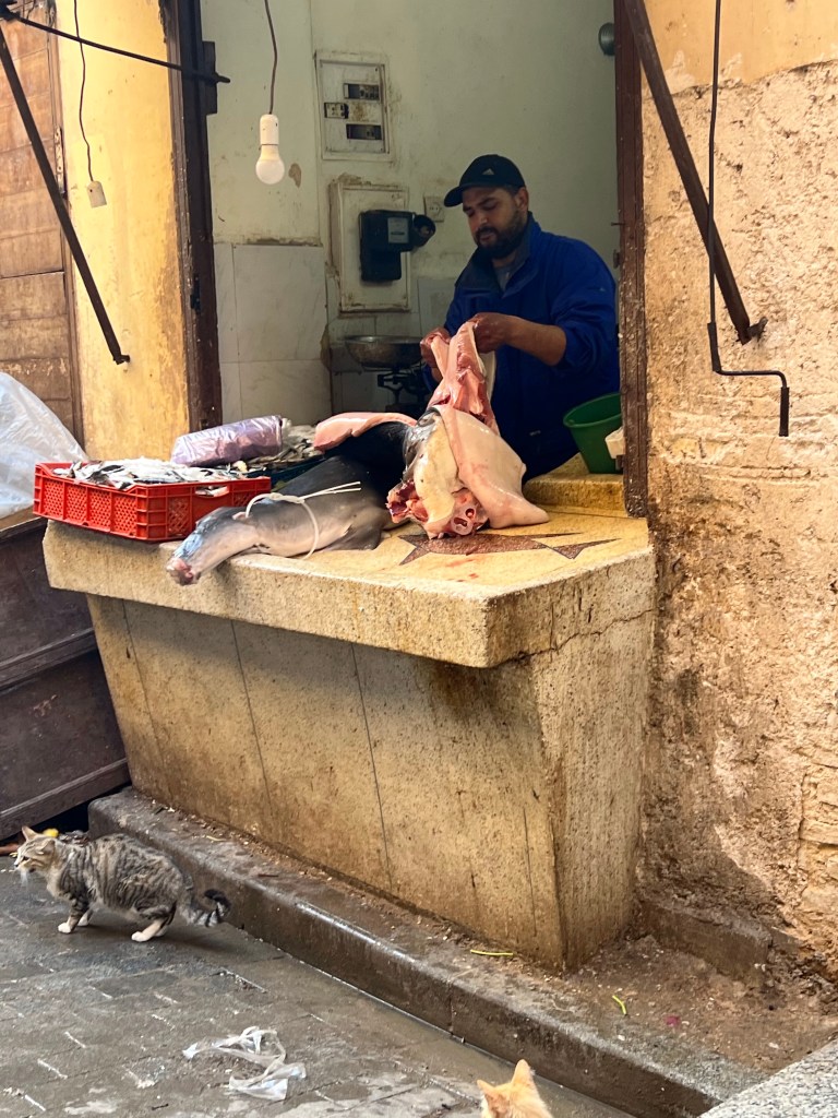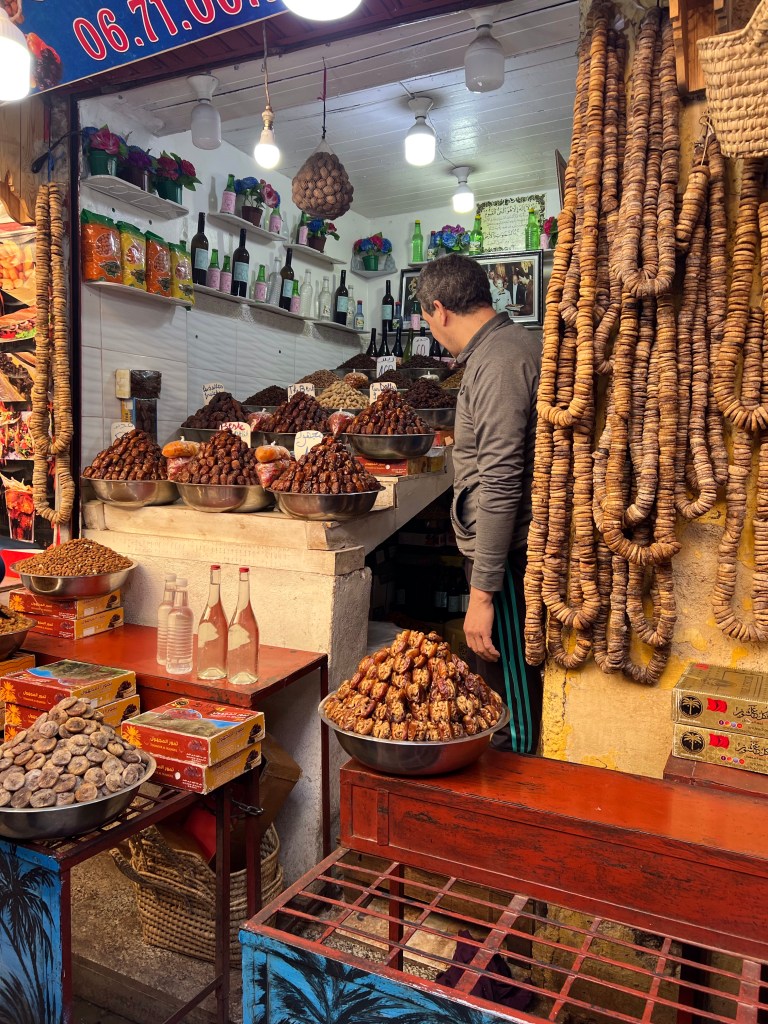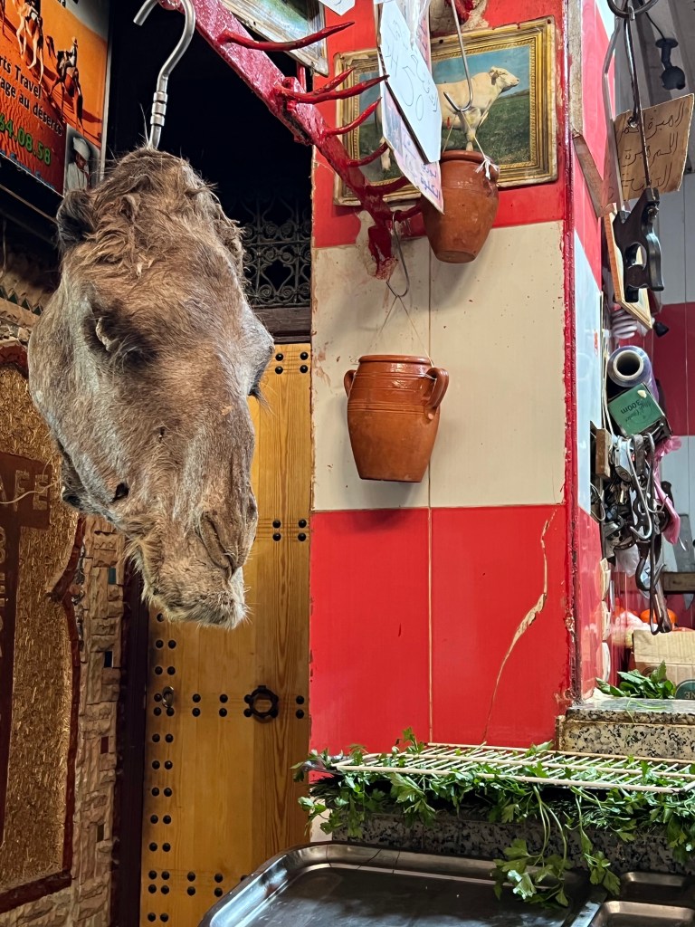 The Medina was an overwhelming experience. It was filled with everything imaginable and some things you would never imagine. First I will talk about food. All the stalls were very quiet in the morning because people sleep in because it is Ramadan and you can’t eat or drink until after sunset. By the end of the day you could easily get separated from the group because it was so crowded. Our guide even hired a “helper” for the day to stay at the end of the group and constantly count us. There are always a few on every trip that don’t listen to the rules and are always trying to push the rules. We wasted time having to wait for them. Our guide’s rule of “no shopping” in the Medina apparently did not apply to them.