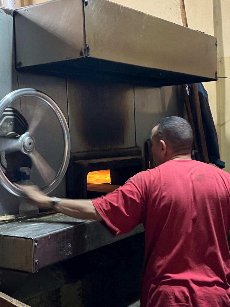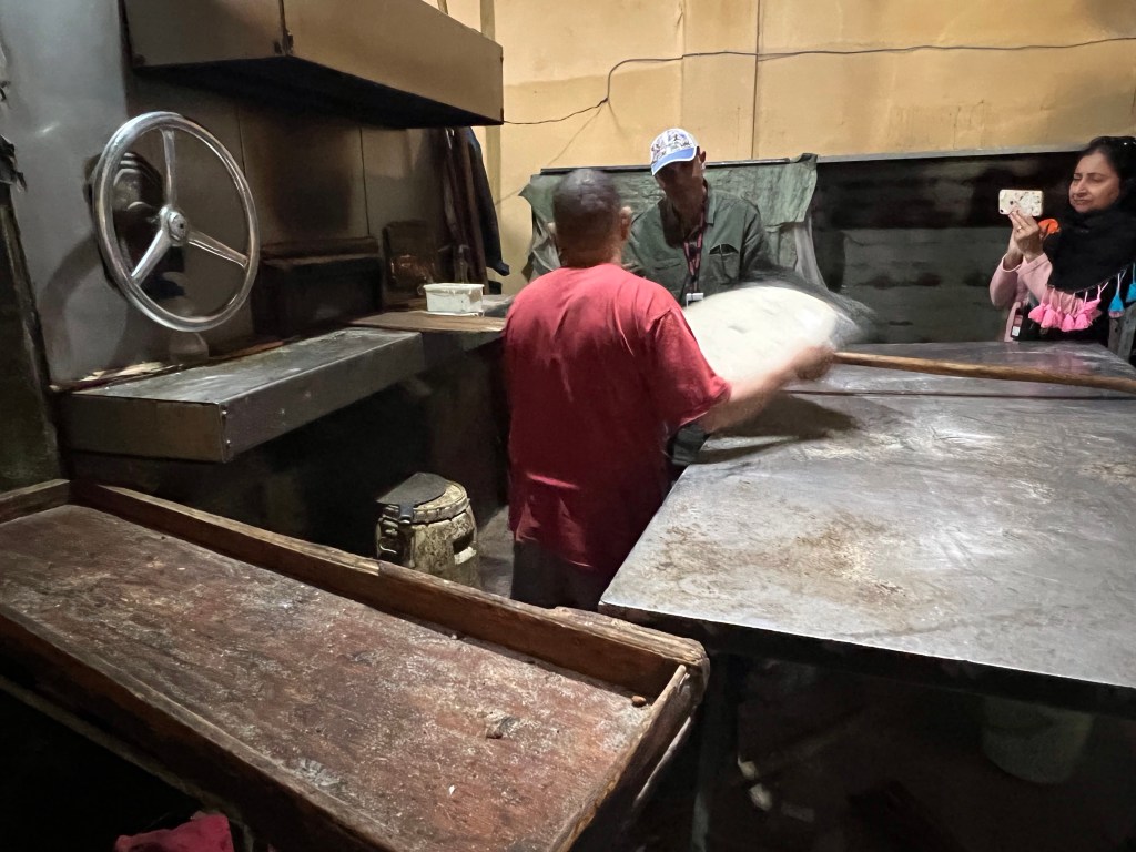 We stopped in a bakery and watched the production. Most of the bread and baked goods taste a little bland as we believe that they do not use salt in baking. All the food also requires salt and is never on the table. It always has to be requested.