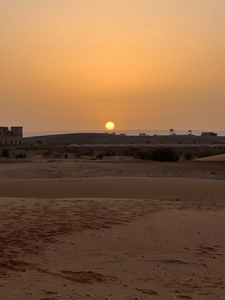 After a wonderful dinner of traditional Berber dishes (and wine) we retired to our tents. Problem was no one showed us how to turn on the propane heater. Just like the first night on safari in Africa, I slept with my clothes on. Sand and all!