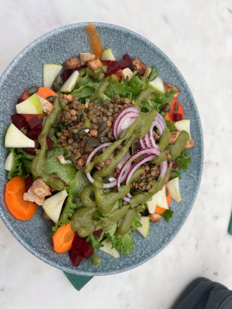 We had a beautiful lunch at a 360 degree observatory called Perla but again you couldn’t see anything because of the fog. I had a great vegan salad with lentils and beet root.