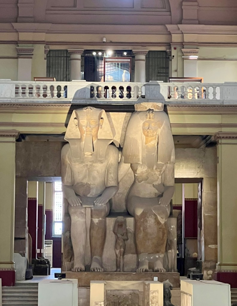 This is the centerpiece of the Egyptian Museum. The Colossal Statues of Amenhotep III and his wife, Tiye and their 3 daughters. He is best known for building the Temple at Luxor.