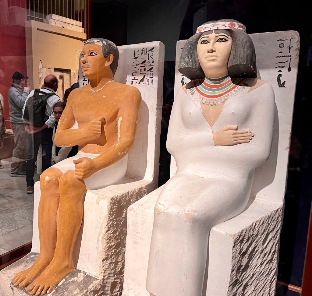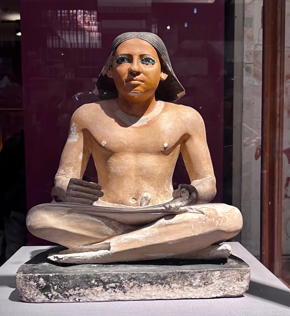 Next up is the Statue of the Seated Scribe from the 5th Dynasty, 2400 BC. It was found in a tomb in Saqura. The detail is amazing and his eyes look real as they are jeweled.