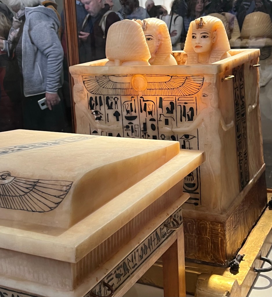 We toured the Egyptian Museum 2 days ago and I have putting off writing this post because I didn’t know what to say. There is no way for me to describe what I saw or to convey the feeling you experience when you see such beauty. There will be a new museum, Grand Egyptian Museum (GEM), opening near the Giza Pyramids “soon.” It was scheduled to open last October, then in April and then who knows. It is reported that the new museum cost over a billion dollars. On display will be all 5,000 pieces taken from the tomb of King Tutankhamun. It will be able to handle 15,000 people a day, in contrast to the current museum that handles at most 7,000 per day and not very well.