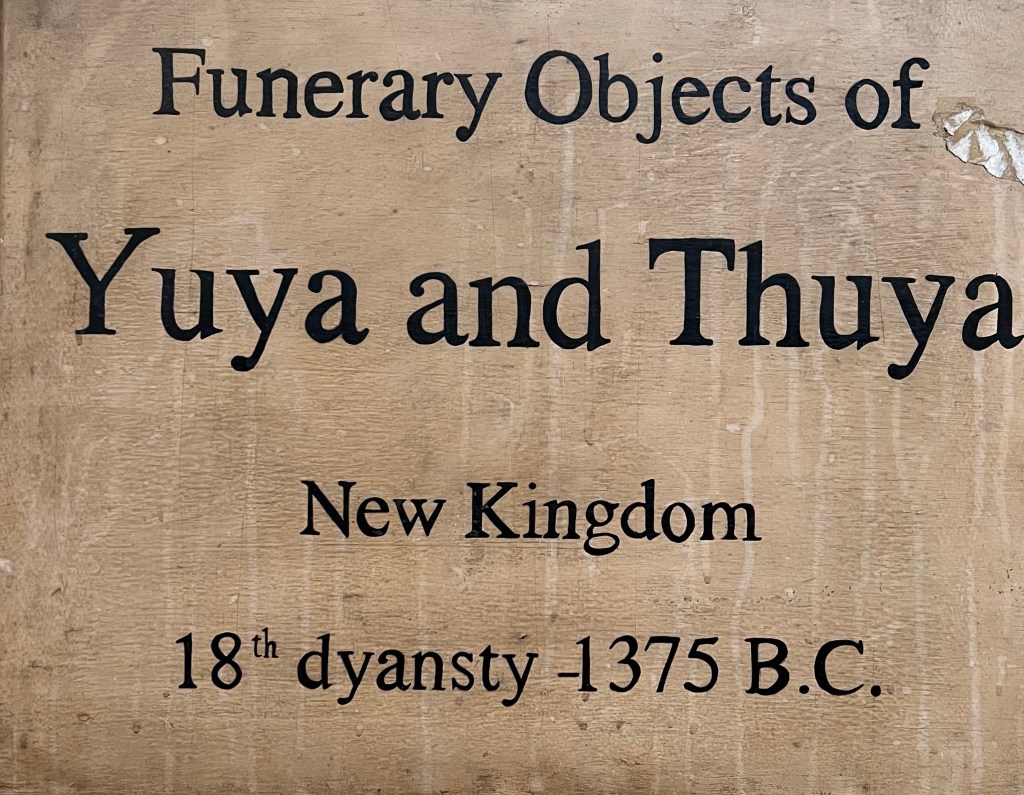The Funerary Masks of Yuya and Thuya. They were discovered in 1905 in the Valley of the Kings. They are believed to be either the grandparents or great grandparents of King Tut. The masks they were wearing were made of cartonnage which is layers of linen or papyrus, covered with plaster and then gilded in gold. Yusuf was a powerful Egyptian courtier in the 18th dynasty.