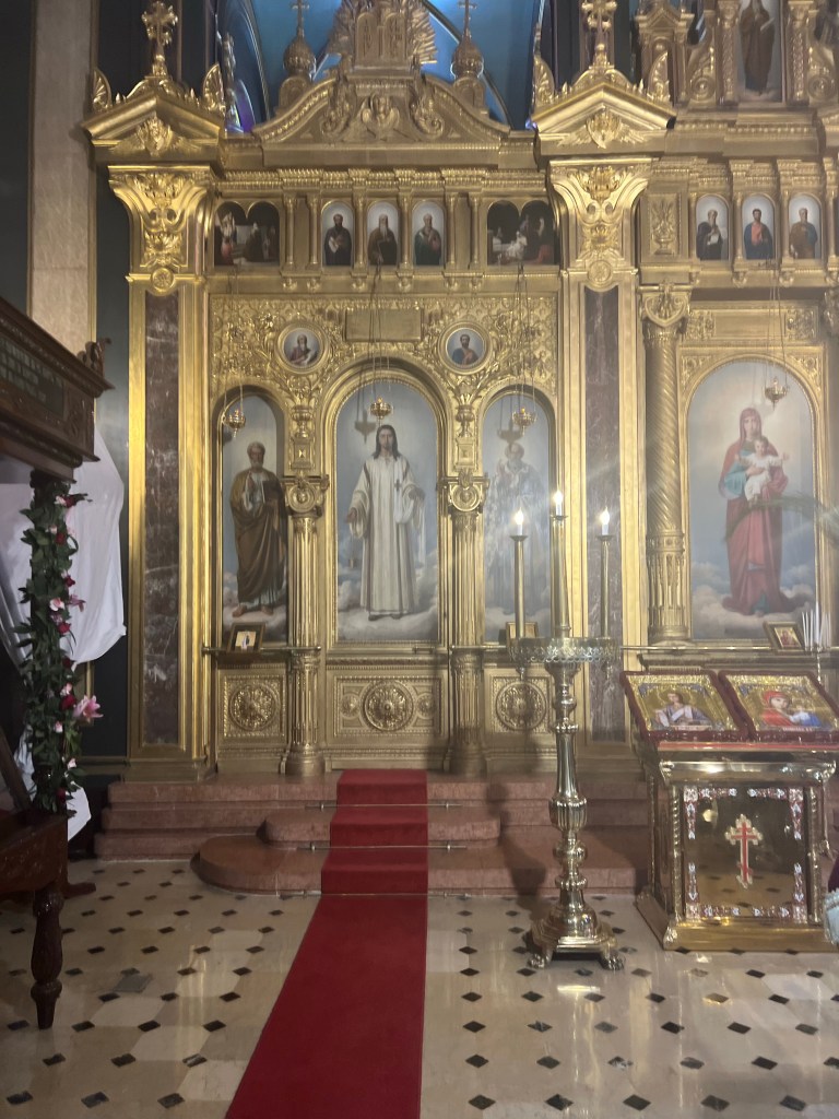 Next we went to a Bulgarian Church which basically is an off shoot of the Greek Orthodox. We were in the Church when the Easter Service started. It is called the “Iron Church” and is the world’s only surviving iron church and is 125 years old. It was one of the first prefabricated buildings in the world and was shipped down the Danube River and the Bosporous.