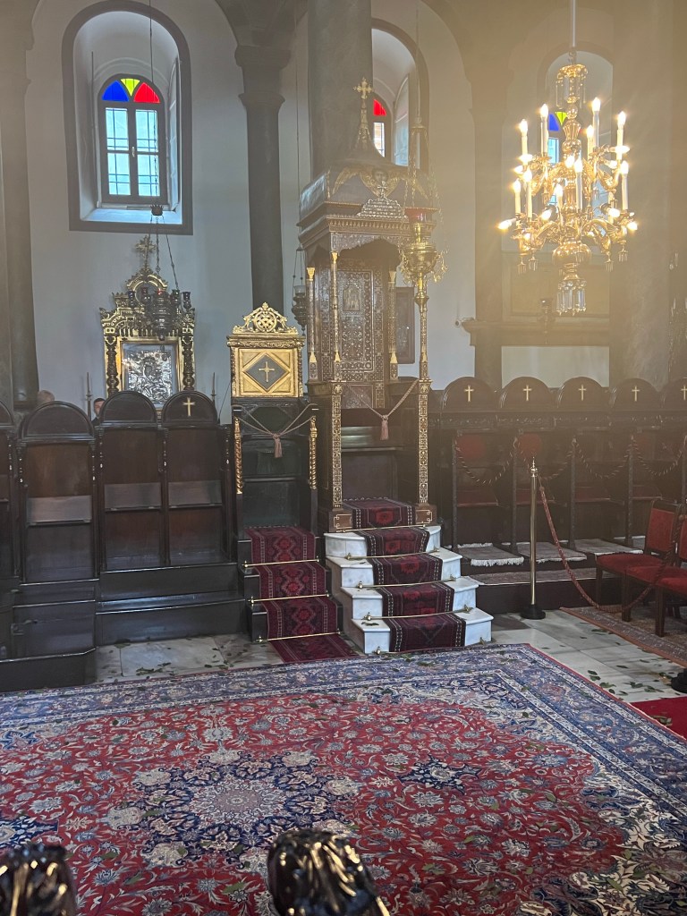 The first church we tried to enter was the Patriarchal Church of St. George. The Patriarch of the Eastern Orthodox Church is like our Pope. In fact Pope Francis even came to this church to visit and bowed to the Patriarch and Catholics all around the world got upset. Being the humble man that he is, it did not surprise me at all that Pope Francis would do that. We had to come back to this church because the service was about to start and lasts over 3 hours. When we did return everyone was required to go through a screening machine as the church had been bombed by terrorists in the past.