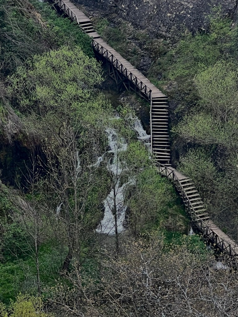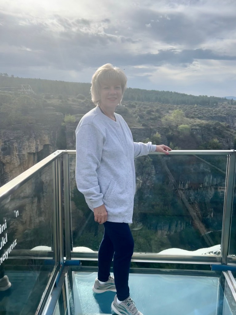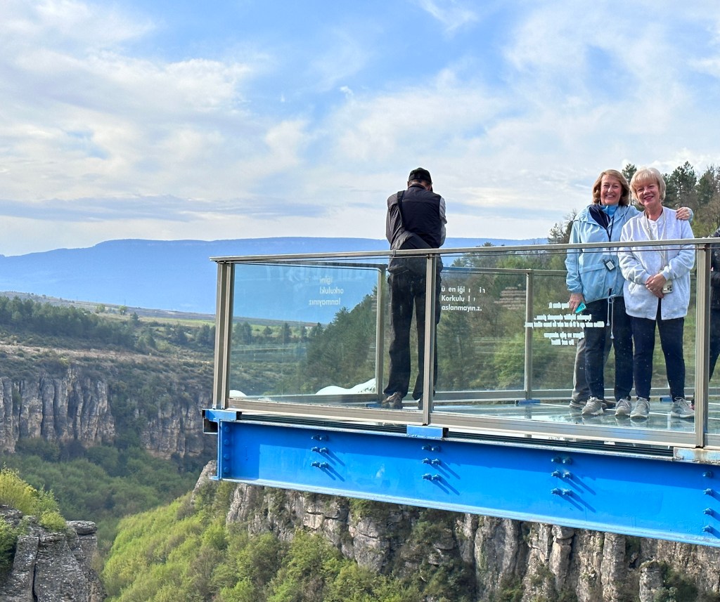 Never knew I was mispronouncing Cappadocia all these years. Now I know. Our guide, Mehmet, is always behind with his schedule because he likes to talk so this morning we had to stop at the Crystal Terrace which is a glass suspended platform suspended from over the edge of a cliff above the Tokatli Canyon (that looked a little like Letchworth State Park). The only way I was able to walk across this platform was to not look down. Not sure how I am going to do the balloon ride in Cappadocia tomorrow morning, but I will try.