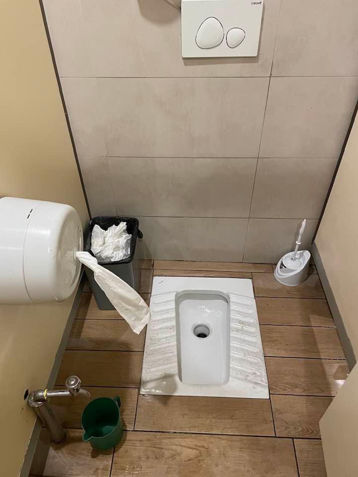 Our next stop was supposed to be a village called Yörük but there was a problem because several women had to go to the bathroom and this was all there was! Even though we checked out of the hotel Mehmet had the bus driver return so we could use the rest rooms in the lobby.