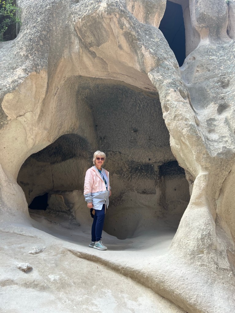 I woke up this morning at 2:00 AM waiting for the 4:30 AM wake-up call for the balloon ride. There had to be several hundred people waiting for the buses to leave for the balloon site. We waited and waited and waited. Finally at 6:30 AM they decided it was a “go” and we all climbed on the mini buses. The balloon baskets are very large so our group of 18 were all able to go up together. So 10 minutes into the ride, the driver got a phone call saying that the takeoff had been aborted. Back to the hotel. We weren’t leaving for our daily tour until 9:00 AM. Peggy, of course, went back to bed. I knew that if I did that, I would never wake up. When we finally met up with our guide it was decided that we would try again tomorrow for the balloon ride.