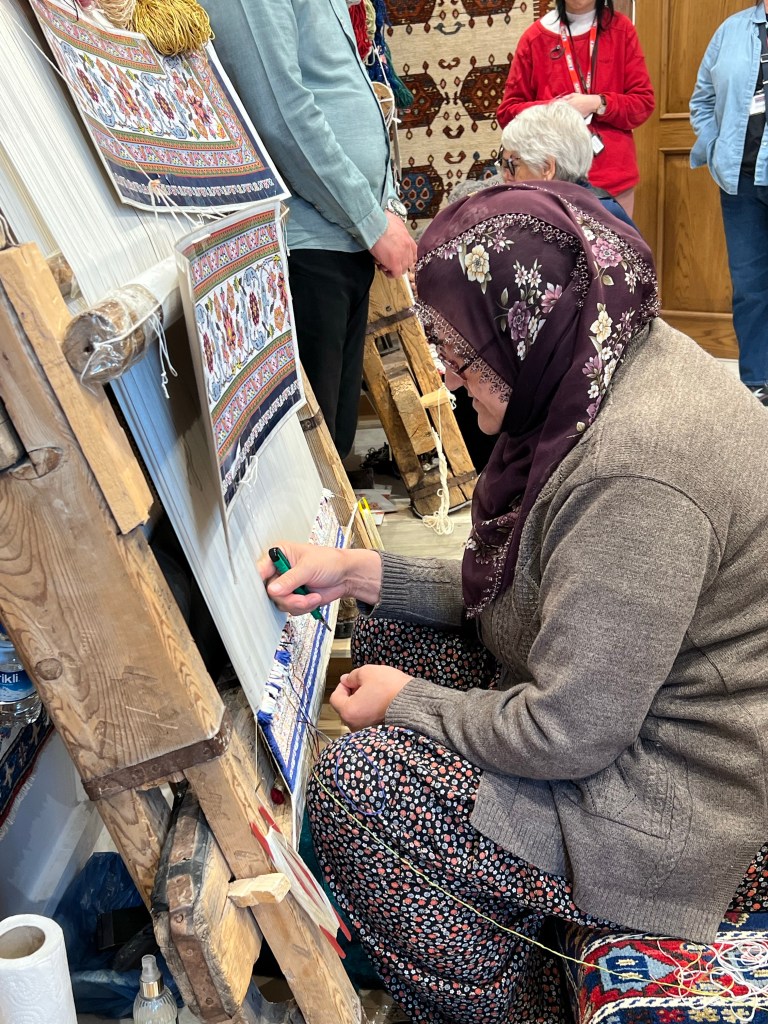 The rugs were obviously gorgeous but also insanely expensive. We are talking $50,000 and up. One couple bought a wool runner. The interesting thing is that they had no small products like at the weaving center in Egypt. Although the small table runner that I bought in Egypt was expensive ($500) but at least it opened a whole other customer base. The owner of the Turkish weaving center said that they sell a lot of rugs to interior designers. Their business plan apparently works for them
