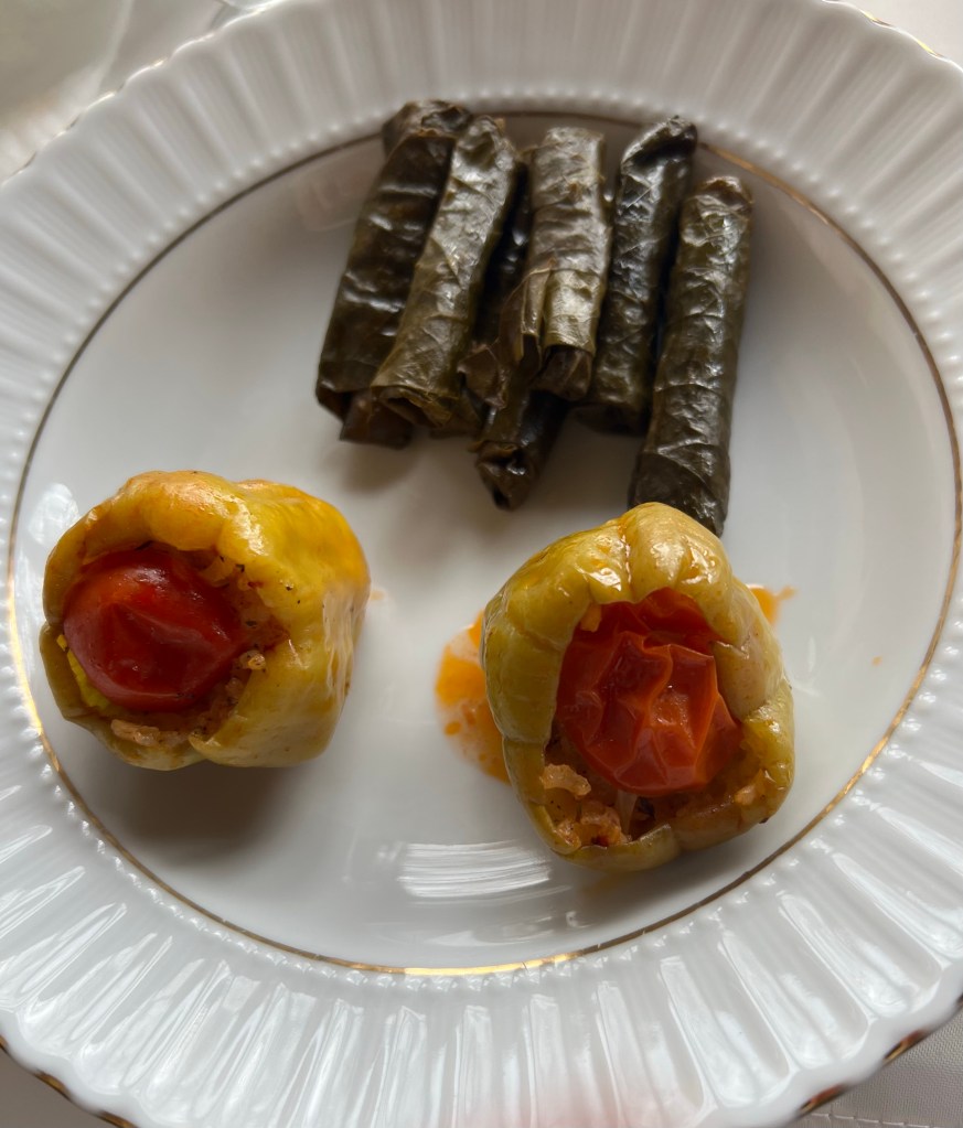 Next stop on to lunch at another family owned restaurant. A great meal for me (after eating no breakfast) of shepherd’s salad, which is basically tomatoes, cucumbers, onions, lots of parsley and EVOO. Also bulgar, a tasty bean dish and especially for me – stuffed grape leaves and tiny stuffed peppers.