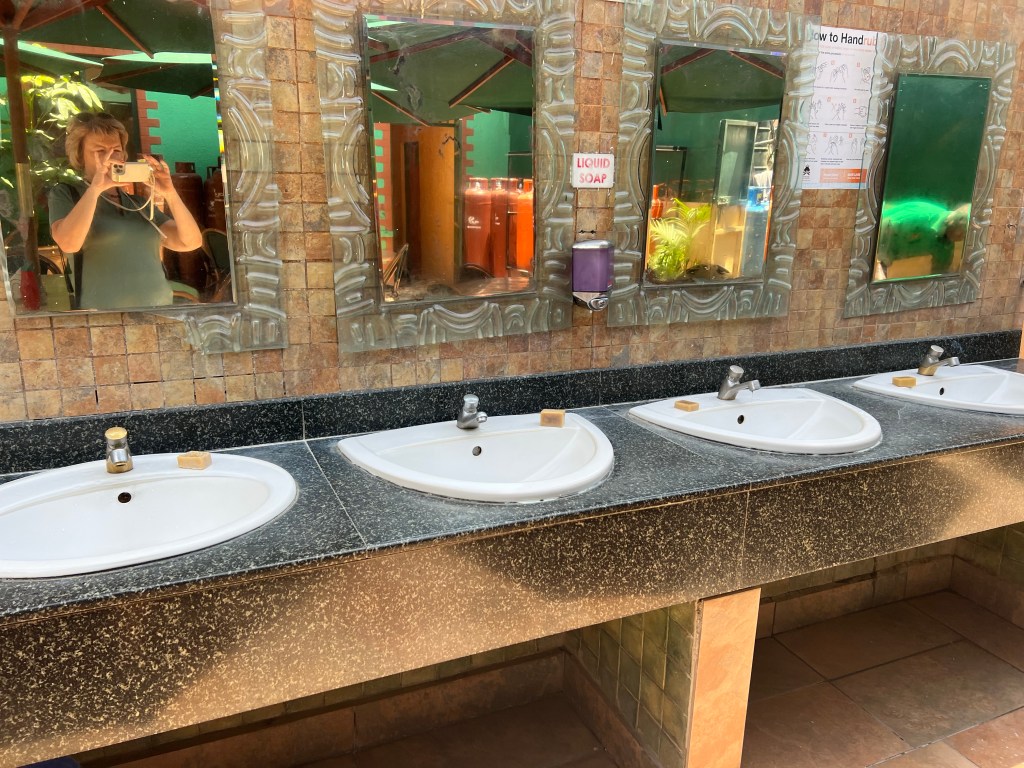 So we walked outside to a row of sinks and we washed our hands. I am thinking that it is really nice that they are sanitary conscious.