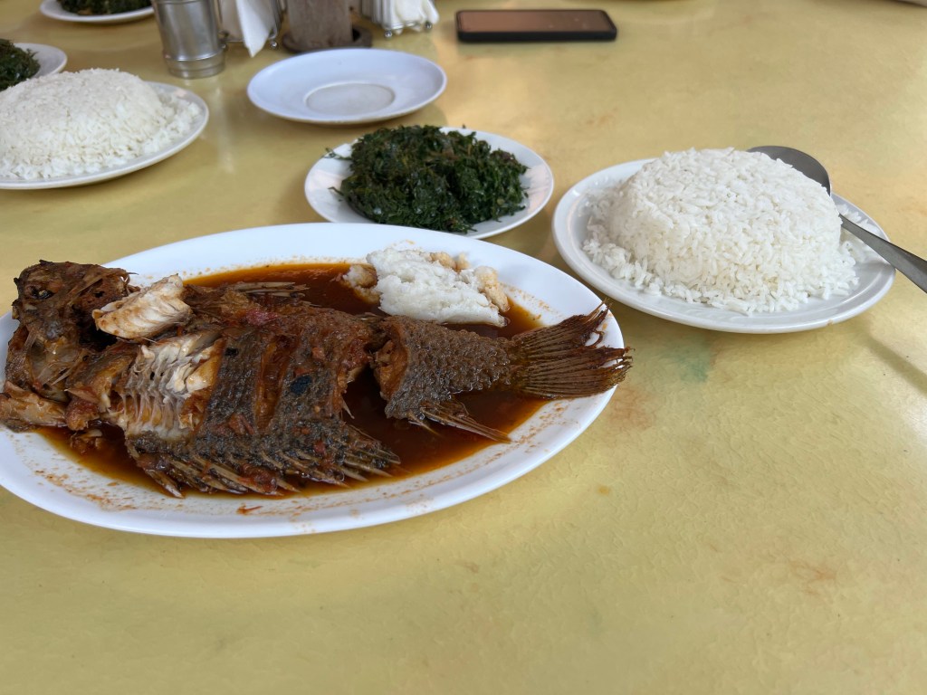 Our next stop was lunch. David took us to a local place that he takes his wife and 4 children to. They show you all the food that you can order and Therese and I picked tilapia from Lake Victoria along with spinach and rice. Andy had roast beef and our guide had goat intestines. Yes, you read that right.