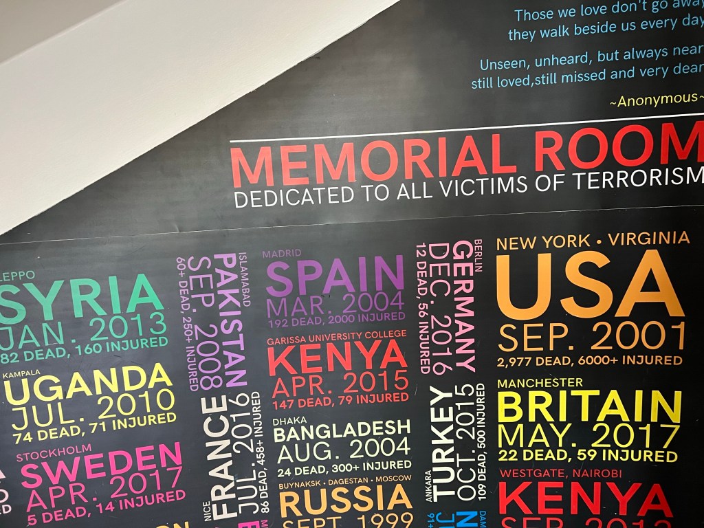 Outside there was a park built on the site. There was a wall with all the names of the victims and a wire capsule that held remains of the building.
