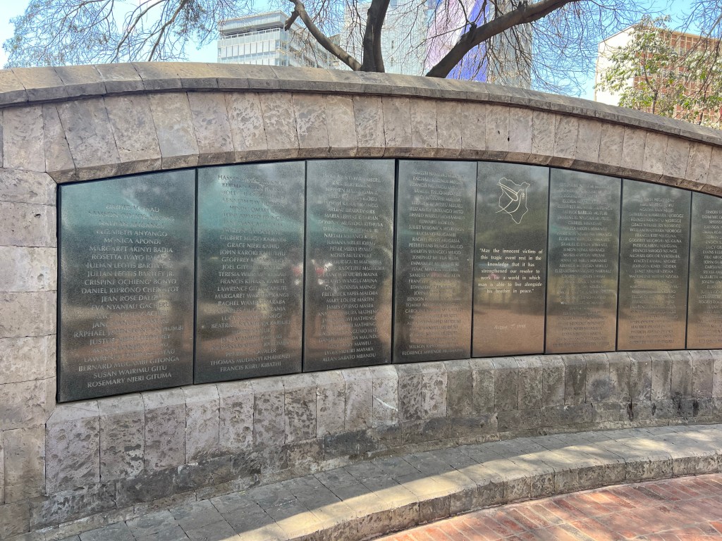 Our next stop was at the US Embassy Park honoring those who lost their lives in the bombing of the US Embassy by al-Qaeda on August 9, 1998, twenty five years ago. There was a small museum with pictures and artifacts. The walls were filled with stories of the survivors who talked about that day. They showed a film interviewing the Ambassador who really the intended victim. Osama bin Laden wanted to kill her because she was a female and he thought the world wide publicity would be greater because she was a woman. Fortunately for her she was at a bank next door at a meeting when the bomb went off. 200 people were killed and over 4,000 were wounded in this bombing and the one that simultaneously occurred at the US Embassy in Tanzania.