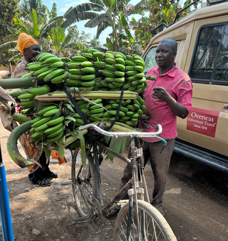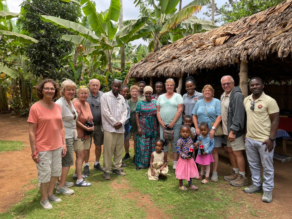 Next stop was the home of Papa and Mama Frank who invited us into their home to see how a traditional low income family lives. From the looks of the outside of their home they didn’t look like they were low income but our guide said they were. Delightful people who had 3 sons and 1 daughter, who was away in boarding school. The oldest son had a wife and two children and they lived at home. Two younger unmarried sons also lived there. We told them a little about our selves and they asked questions about life in the US. After a brief tour of their beautiful home we went outside for a tour of their banana farm. Mama Frank prepared a wonderful lunch for us. They had a large covered outdoor dining area that we ate under. Our group sat at every other place setting that allowed us to have personal contact with the family. Their questions of us were very thoughtful and sometimes provocative. An absolutely wonderful experience that made this trip much more than just chasing after animals. The human connection was so special.