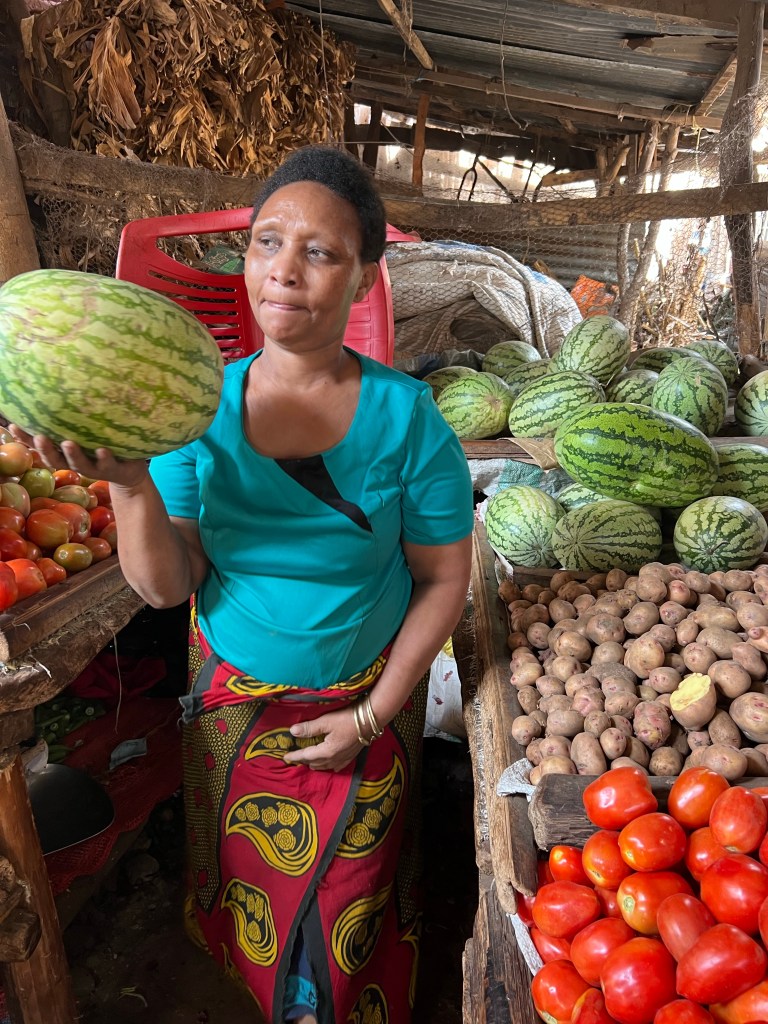 When we went into the open air market, I asked the first woman I saw for a tikti maji and she gave us a watermelon. Eileen paid and off we went.