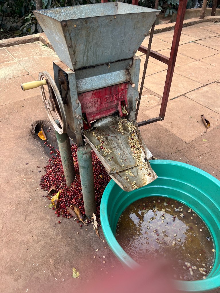 We returned back to our hotel and several of us walked to a small family owned coffee plantation to learn how coffee was made. The family hires local people to pick the beans when they are ripe. They are all picked by hand and when they are red they are ready to be picked. They are called coffee cherries. Unfortunately not all the beans on the whole plant are ready to be picked at the same time. After the beans are picked they are put into a hand cranked machine that separates the bean from the pulp. We tasted the pulp and it was very sweet.