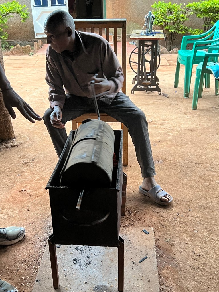 The next step is that the beans are roasted over a charcoal fire for 45 minutes. The basket must be turned continuously or the beans will be burnt. This is the grandfather and the original owner of the coffee plantation. He is the only one who is allowed to roast the coffee.