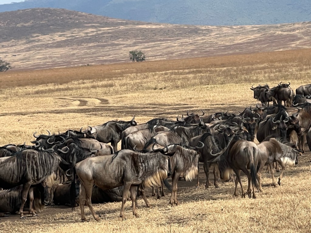 Basically the Great Migration starts in the Ngorongoro Crater because this is the place where all the wildebeests give birth to their babies in the spring. The vegetation can’t sustain so many animals so the wildebeests begin the annual trek from Maasai Mara to the Serengeti and back again.