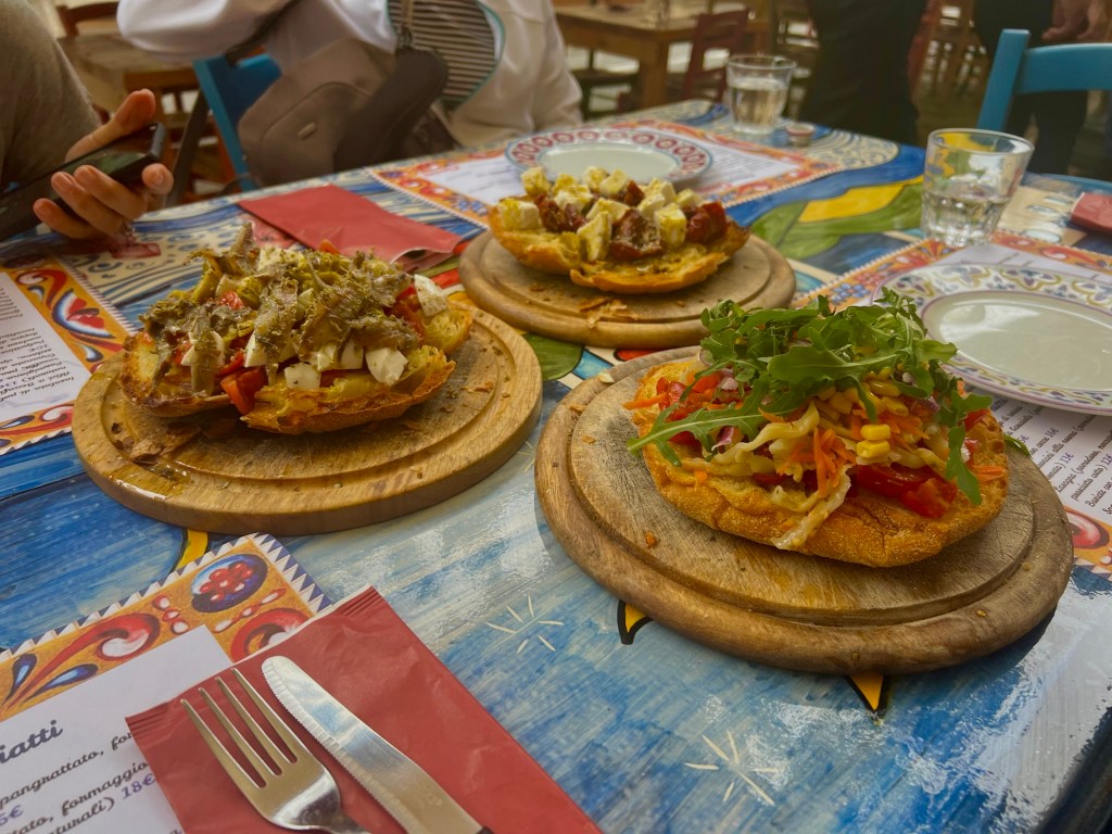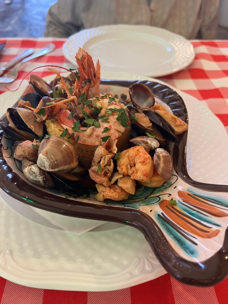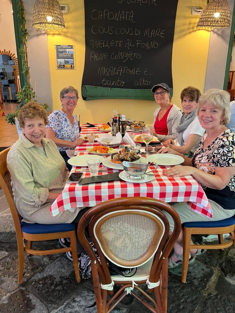 We had a wonderful lunch at a restaurant at the Marina Corta that was served family style and was all vegetarian. They made the eggplant parm for me with no cheese. We had salad, fried cabbage with onions (that was to die for) along with a couple other courses. Unless I take pictures of the food they all tend to run in together. Each meal is better than the last.