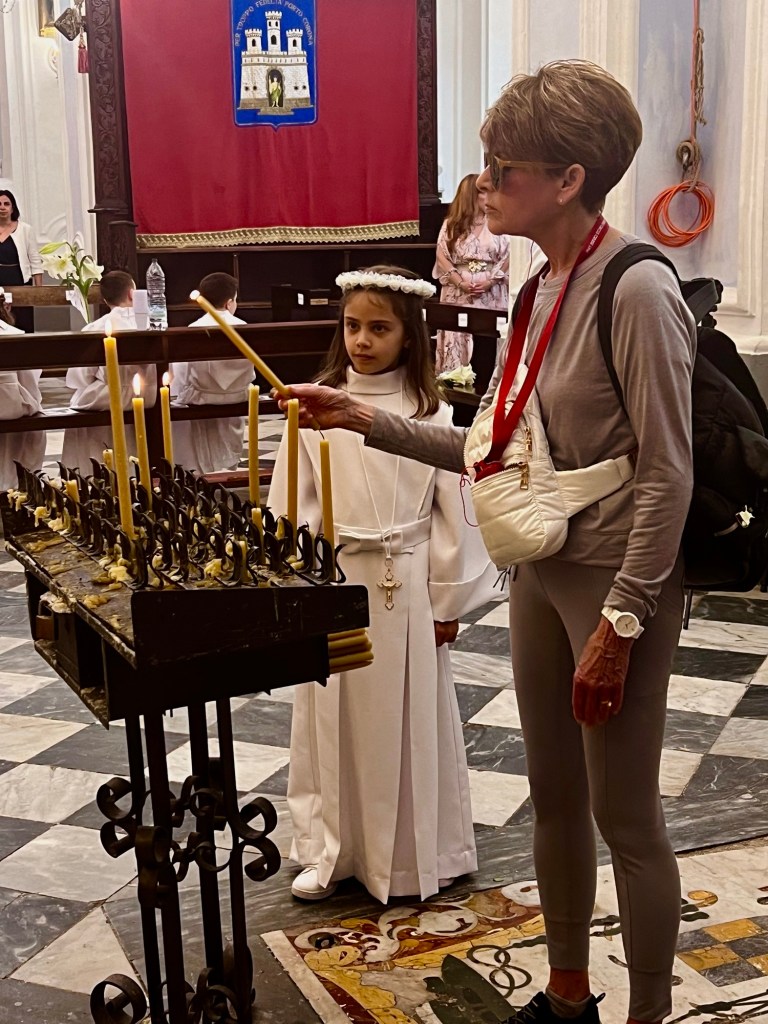 The next morning was Sunday and we had a discovery walk with a guide and toured the Castle of Lipari, the Archaeological Museum along with the Cathedral of St.Bartholomew. Definitely an interesting walk up the hill that seemed like a mountain. It was so sweet because it was first communion day at the Cathedral and all these little boys and girls were dressed in white carrying white lilies.
