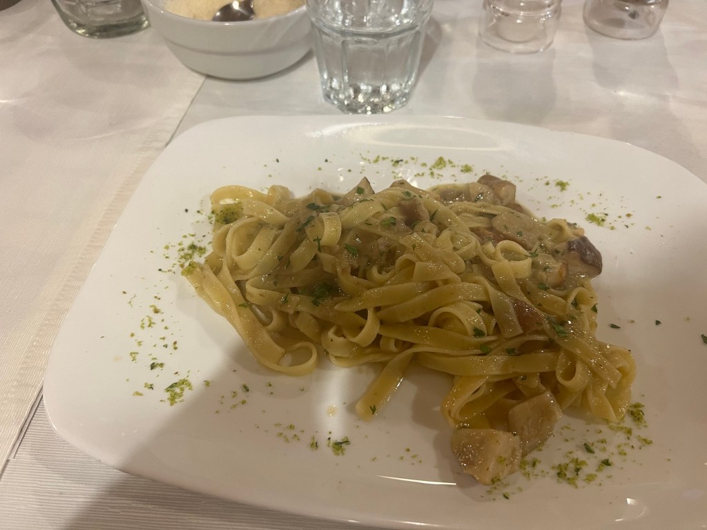 For dinner Nino recommended a restaurant called La Catina that was very close to our hotel. In almost all restaurants that we have dined in there have been English subtitles to explain what we were ordering. Not this one, plus our sweet waitress spoke very good English but not very good Italian. We cheered when Nino walked in the door to join the 5 of us. I definitely would have ended up with sausage in my meal if he wasn’t there.