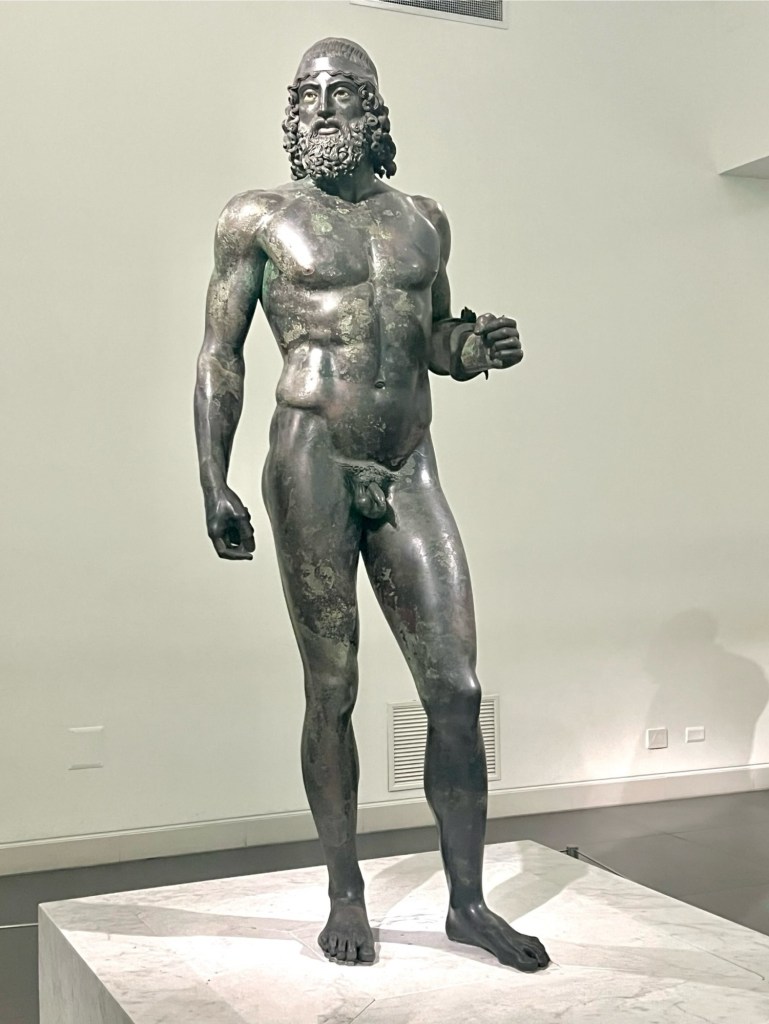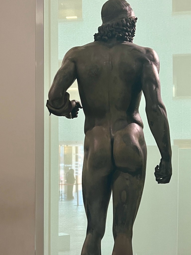 One of the most important exhibits in this museum is of the Greek Riace Warriors. Before we went into see them we basically had to walk into a sealed room and be decontaminated for about 5 minutes. It was a bit creepy. These two Greek warriors were cast of bronze in approximately 450 BC. The statues were found in the sea in 1972 off the coast of Calabria. It took almost 9 years for them to be restored and open for view to the public. Apparently there is some debate about how they were found but the most accepted story is they were found by a snorkeler who originally thought it was a dead body. Our group was very lucky to be the first and only ones in the room that day to see these amazing statues.