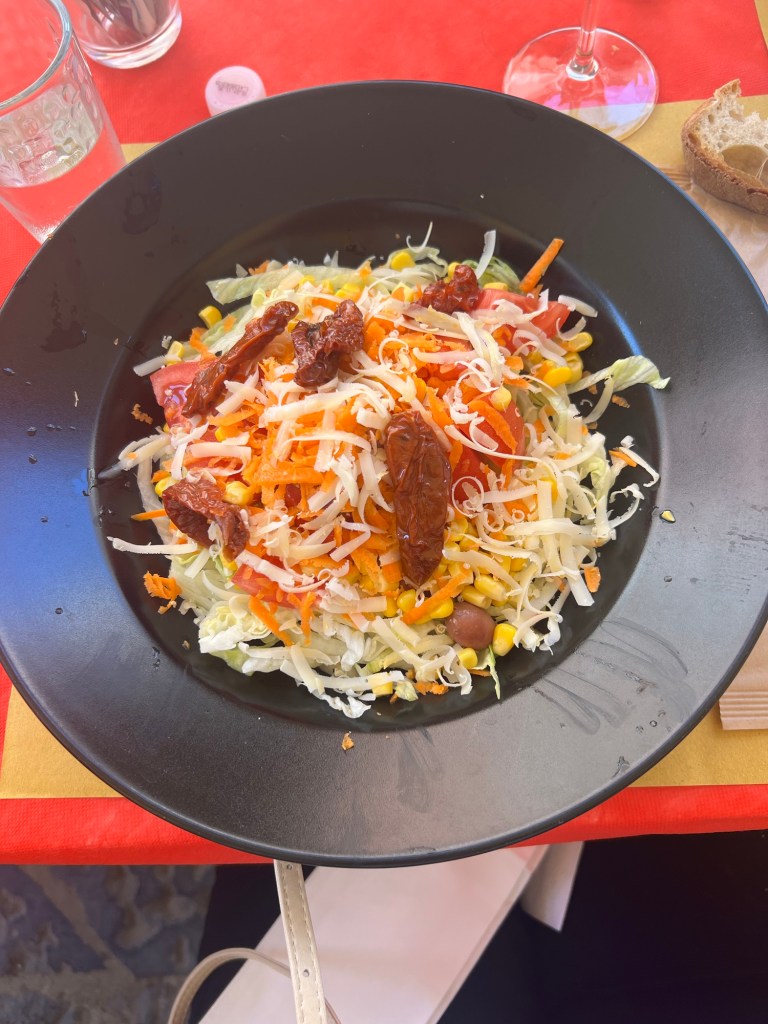 We returned to the hotel for dinner that left a lot to be desired. They obviously make special meals for me and many times it is better than what everyone else is being served. On this trip there is one vegan (me), 2 people allergic to shell fish, and 2 vegetarians who will eat only fish. Of the four course meal that night, all I ate was the lentil soup. The appetizer plate that should have been hot was cold from the refrigerator. The tofu that they served for dinner had no seasoning or marinade and was completely inedible. The first bad meal of the trip. Off to bed to get ready to leave this resort so we could move on to Pollino National Park to hike up a mountain