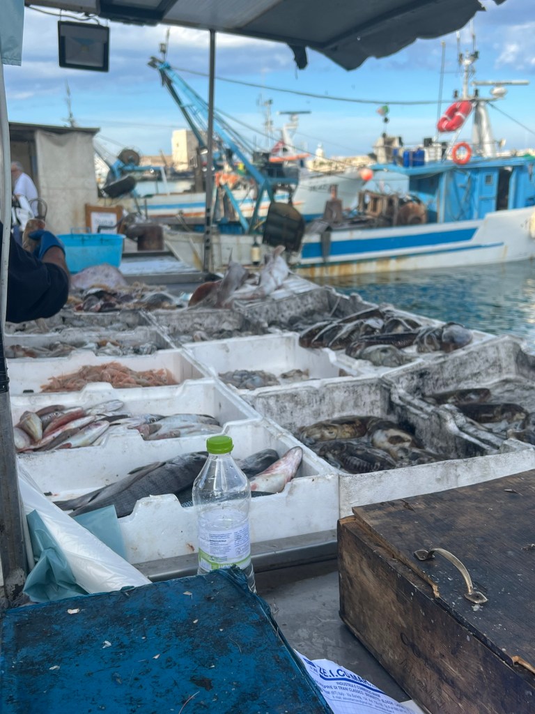 The waterfront in Trani was beautiful. It was filled with fishing boats and at the end of the day, fisherman selling their wares.