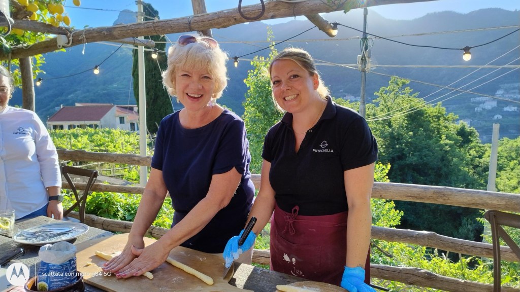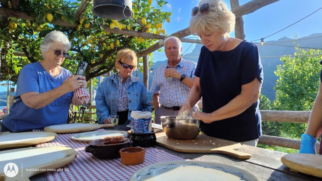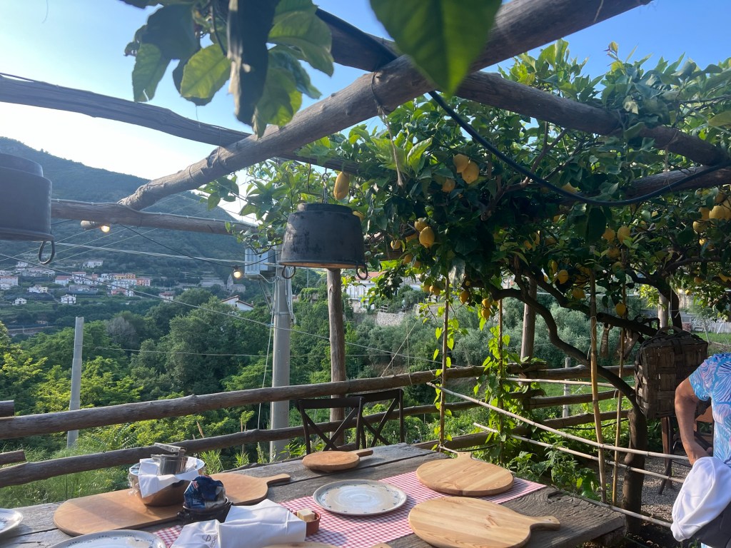 Our guide suggested to us going to a restaurant that was up the mountain from Maiori in Tramonti that had a cooking class. We all thought that 110 euros was a little expensive but why not! The setting was absolutely spectacular.
