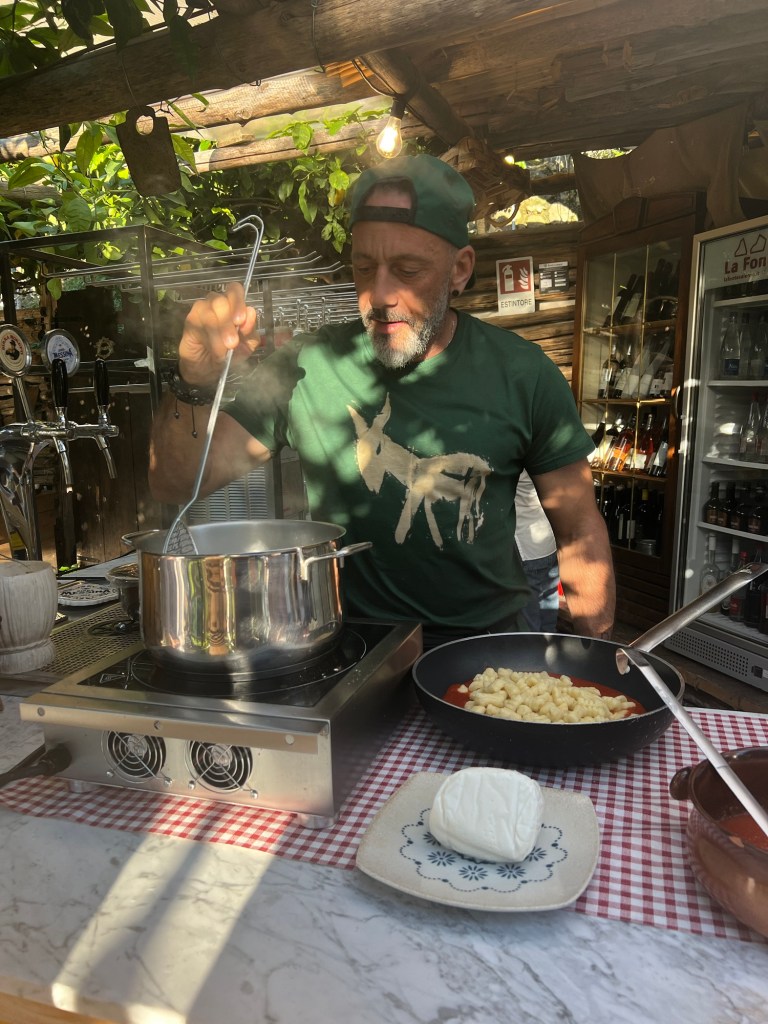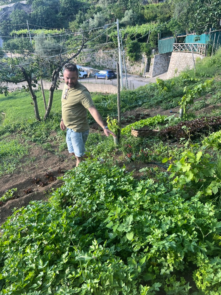 Before we started the gnocchi making we had to go to the garden with the owner of the restaurant to pick the vegetables for the salad.